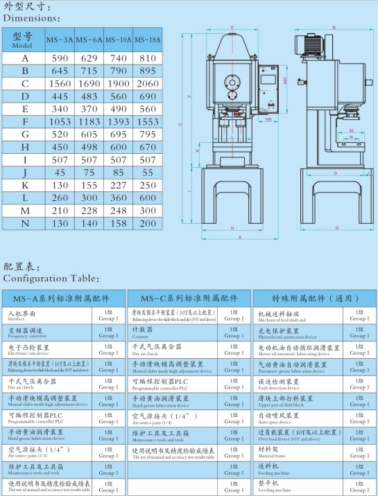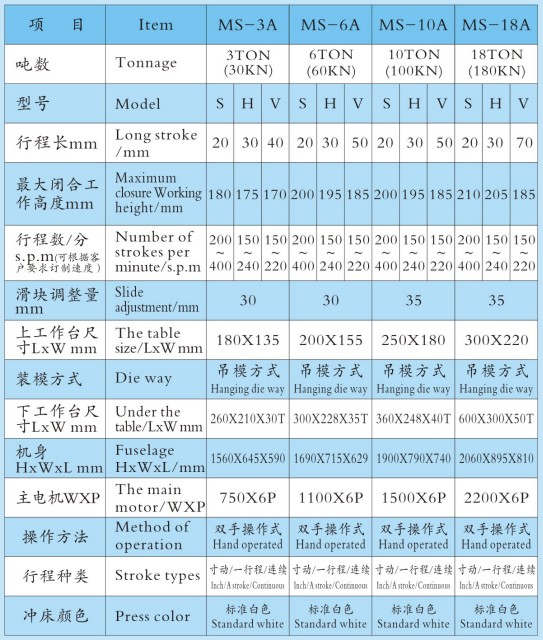 高精密智能化冲床MS-A系列技术参数: